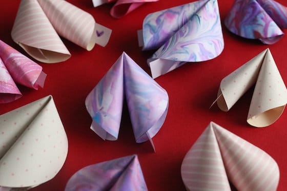 Okay, I have to share one more, because these paper fortune cookie Valentines from Happy Hooligans are also super easy yet unique and pretty, too! You basically just need some cute (or plain) paper and glue.